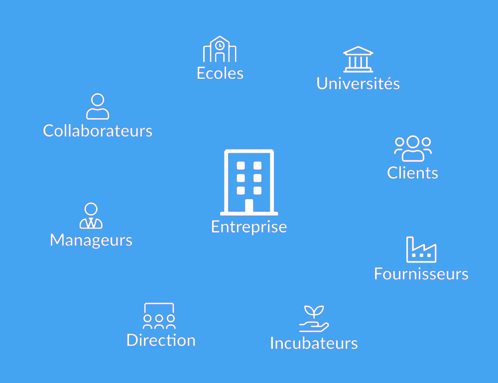 Il faut donc avant tout déterminer si vous mettez en place un challenge en interne ou en externe, c’est-à-dire auprès de vos collaborateurs ou de votre écosystème. Cet écosystème est constitué de différents partenaires comme par exemple les écoles ou universités, startups, clients, fournisseurs, incubateurs et accélérateurs ou tout autre partie prenante.