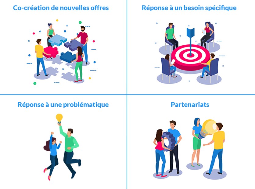 De façon générale, si vous souhaitez mettre en place un challenge ou un appel à projet, c’est pour chercher à cocréer de nouvelles offres, répondre à un besoin spécifique ou à une problématique sur un temps donné.