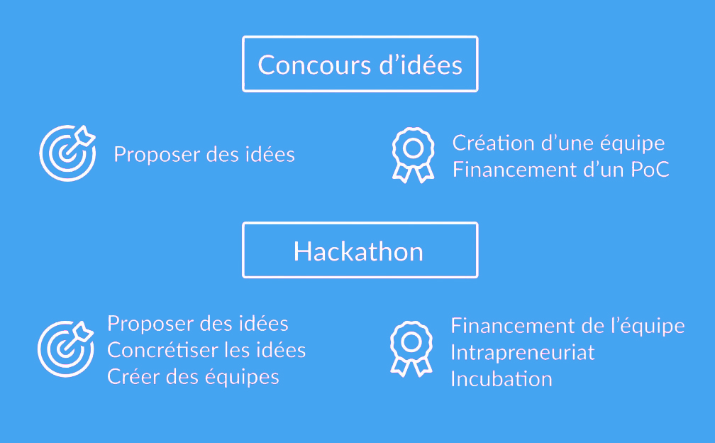 Il s’agit des concours d’idées et des hackathons.
